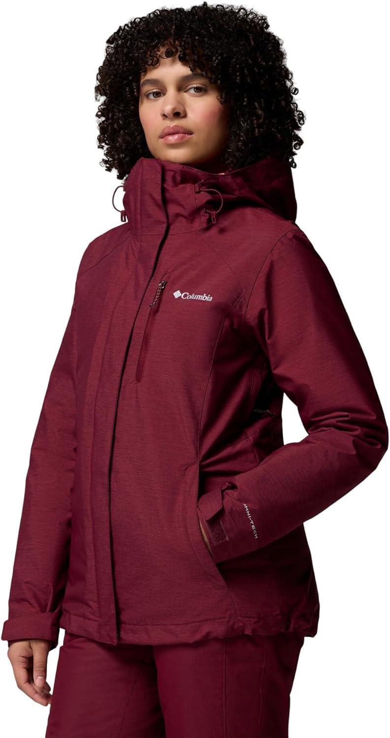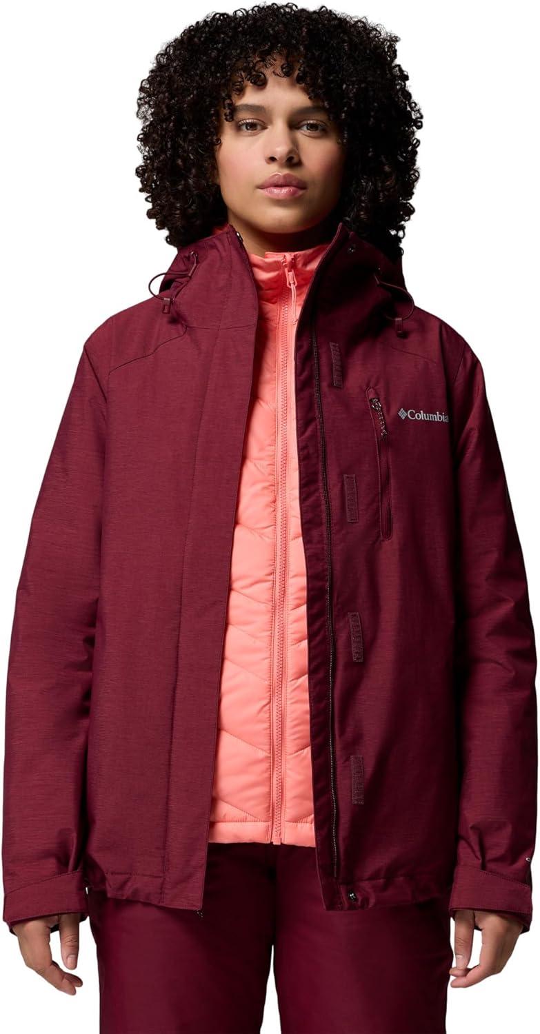 This Columbia women’s 3-in-1 jacket lets you wear a fully waterproof-breathable shell or an insulated thermal-reflective liner—or both for serious snow and cold. It’s loaded with recycled insulation and snow-ready features, including a powder skirt, ski pass pocket, and underarm vents. Columbia offers this jacket in multiple colors and sizes. Extended sizing available. Active fit.